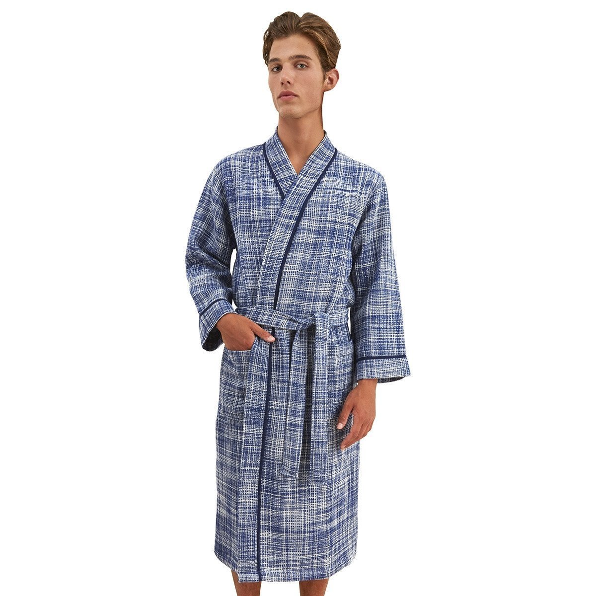 Unisex kimono, honeycomb, 100% cotton, 200 gsm. Available in 2 colors: Encre & Galet.