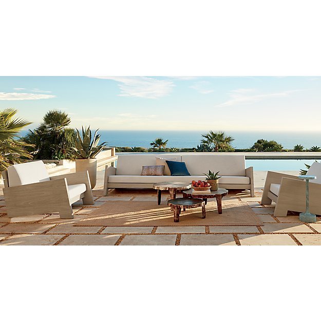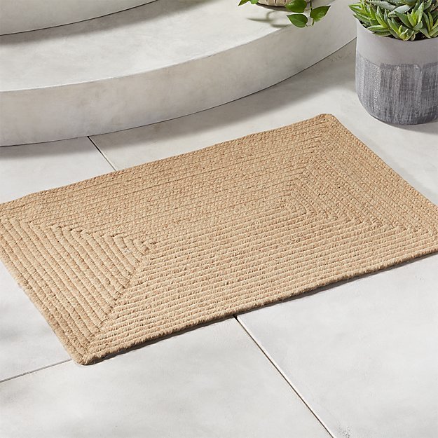 Natural tone polyester braids a rectangular patterned rug that passes for natural jute. Durable, easy-to-clean and soft under foot, outdoor rug works inside too.