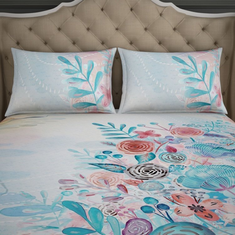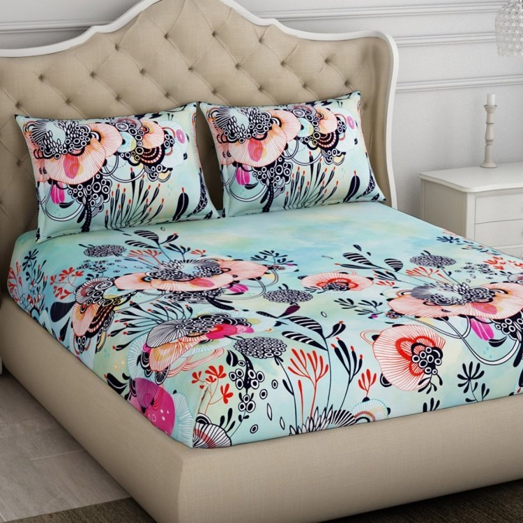 Giving your personal space a refreshing look with a burst of floral print, these cotton double bed sheets ensure softness and a lively vibe when you hit the bed.