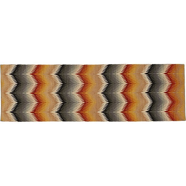 COLOR STORY. Earthy tones of wool woven in an irregular chevron pattern is the burst of low-key color your room needs. Easy-to-layer pattern reminds us of an iconic Italian fashion knitwear house. You know the one. Flatweave wool rug is perfect for high traffic areas.